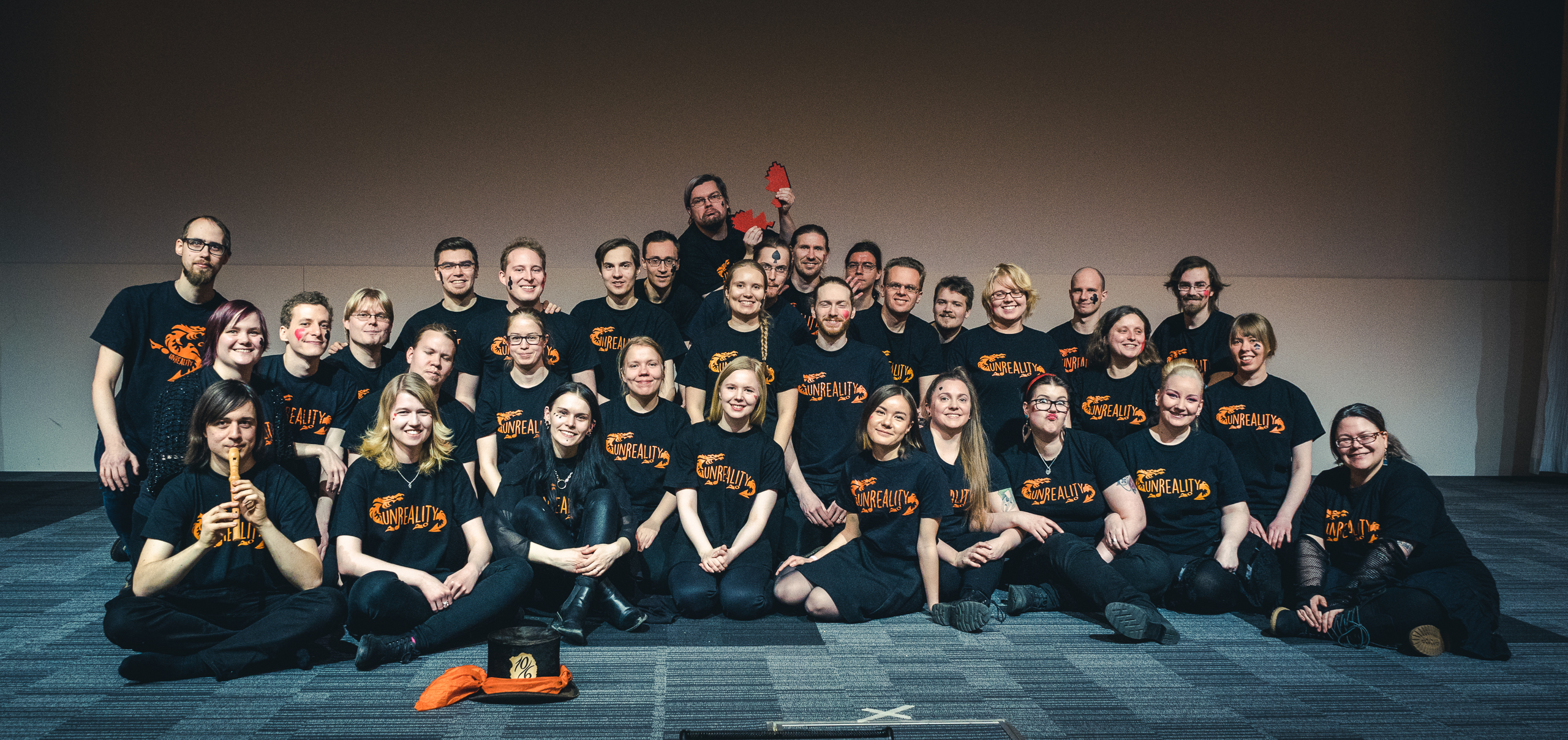 Unreality is a Helsinki-based mixed choir, founded in January 2014. This choral society is the first Finnish choir to sing music exclusively from movies, TV series, video games and animations. Unique choral arrangements and the blazing orange dragon are its trademarks – time after time they take the listener to beloved sceneries beyond reality and back again. Every year Unreality performs at massive conventions and the long list of conquests includes events such as Tracon, Ropecon, Helsinki Game Music Festival, Worldcon 75 and a joint concert with Helsinki Symphonic Winds. Additionally, the choir holds concerts twice a year and its small group, Nanoreality, is also actively doing gigs in events of all sizes. The choir's artistic director is Jari Koivistoinen.